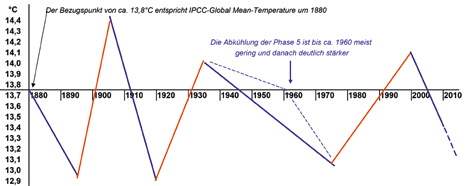 Fazit: Warmphasen vor den CO2-Emissionen, Kaltphasen trotz der Emissionen; es ist kein Einfluß der CO2-Emissionen erkennbar.